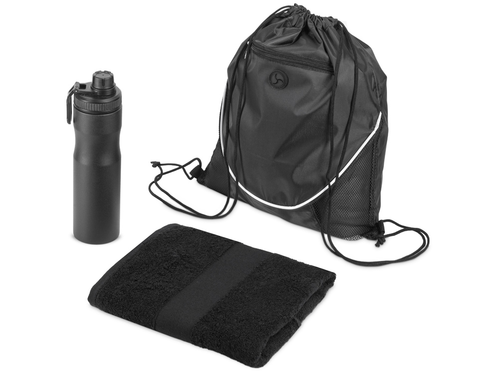 Спортивный набор со стальной бутылкой и полотенцем Advanced, черный