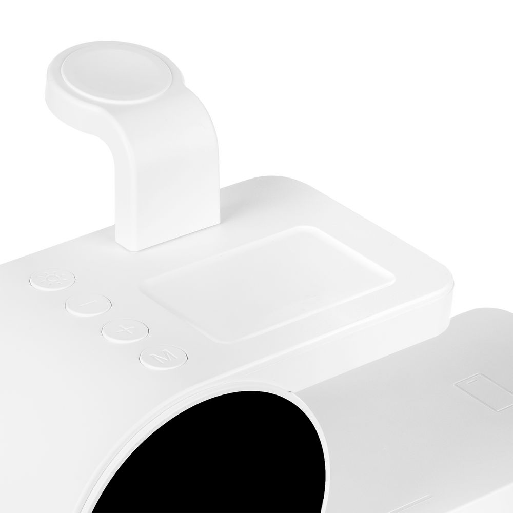 fullStack — технологичное многофункциональное устройство, которое сразу сочетает в себе станцию беспроводной зарядки разнообразных устройств, электронные часы с будильником и ночную лампу.