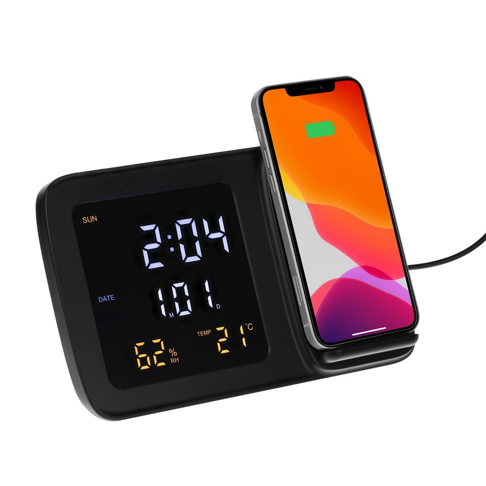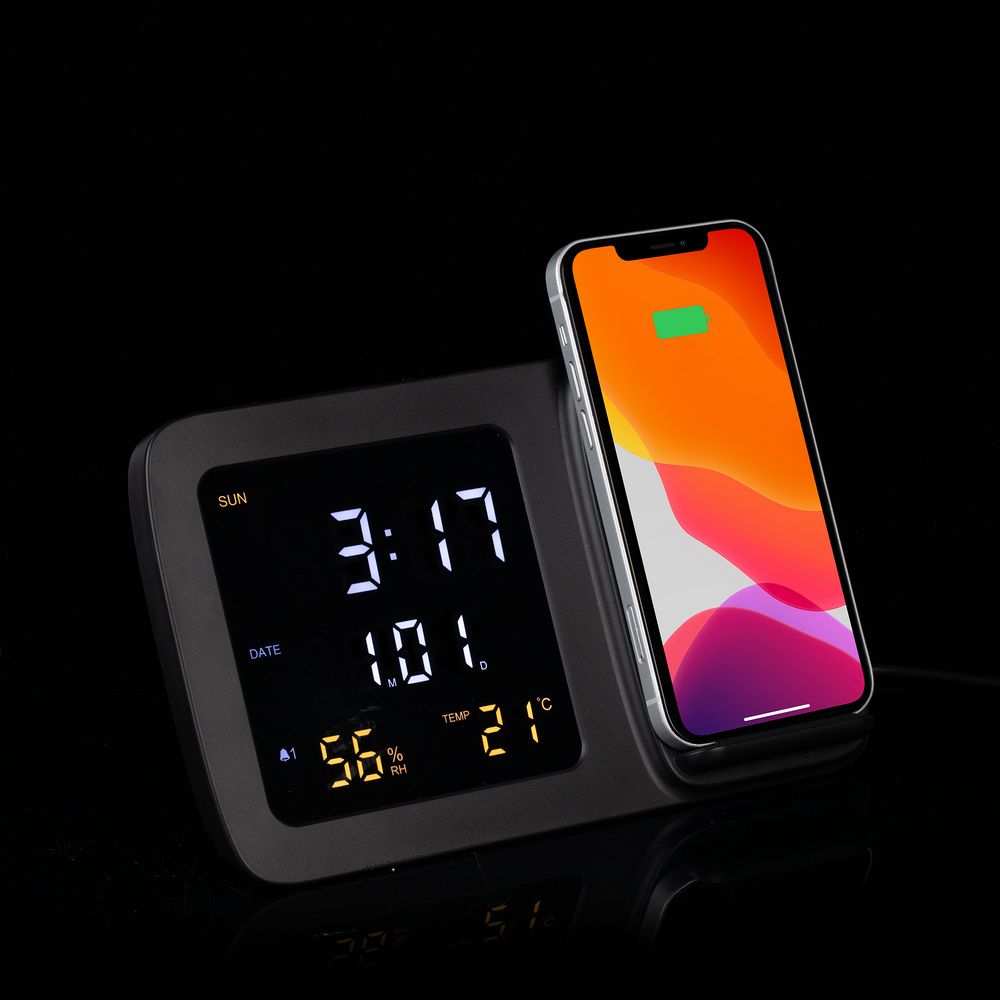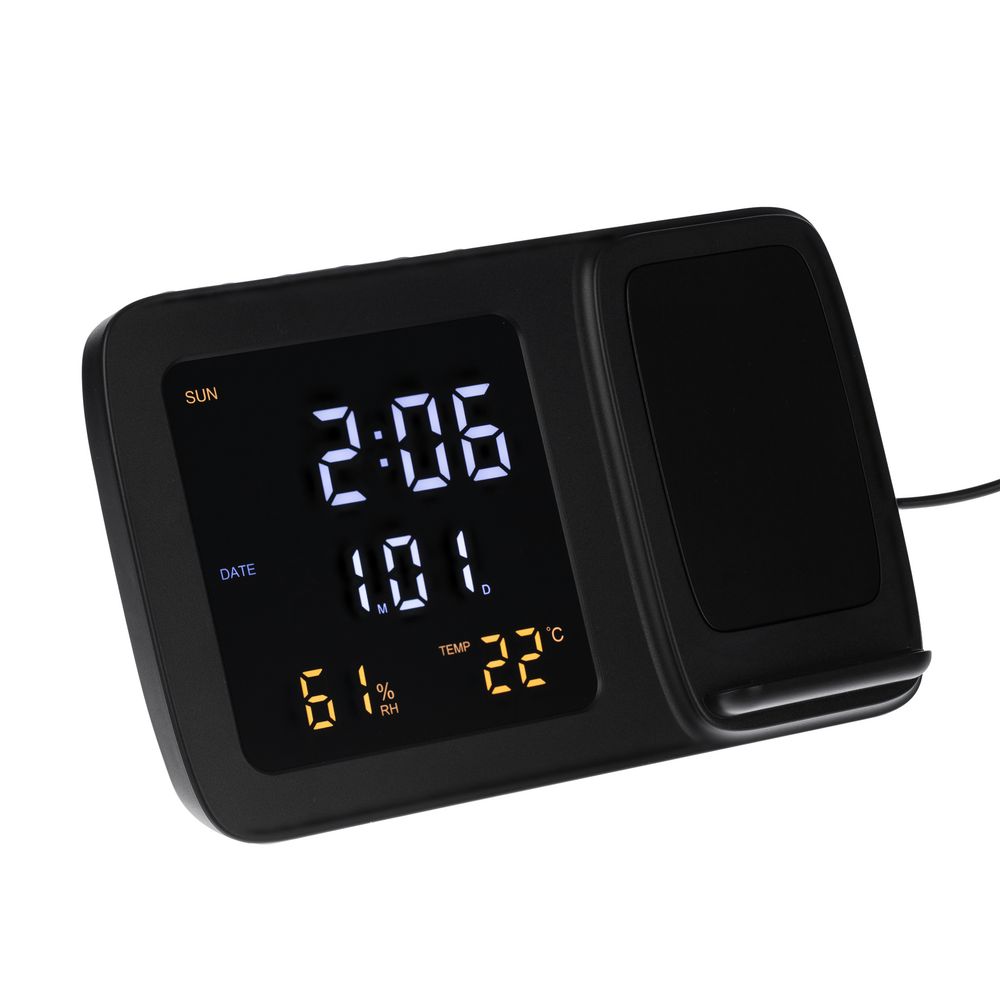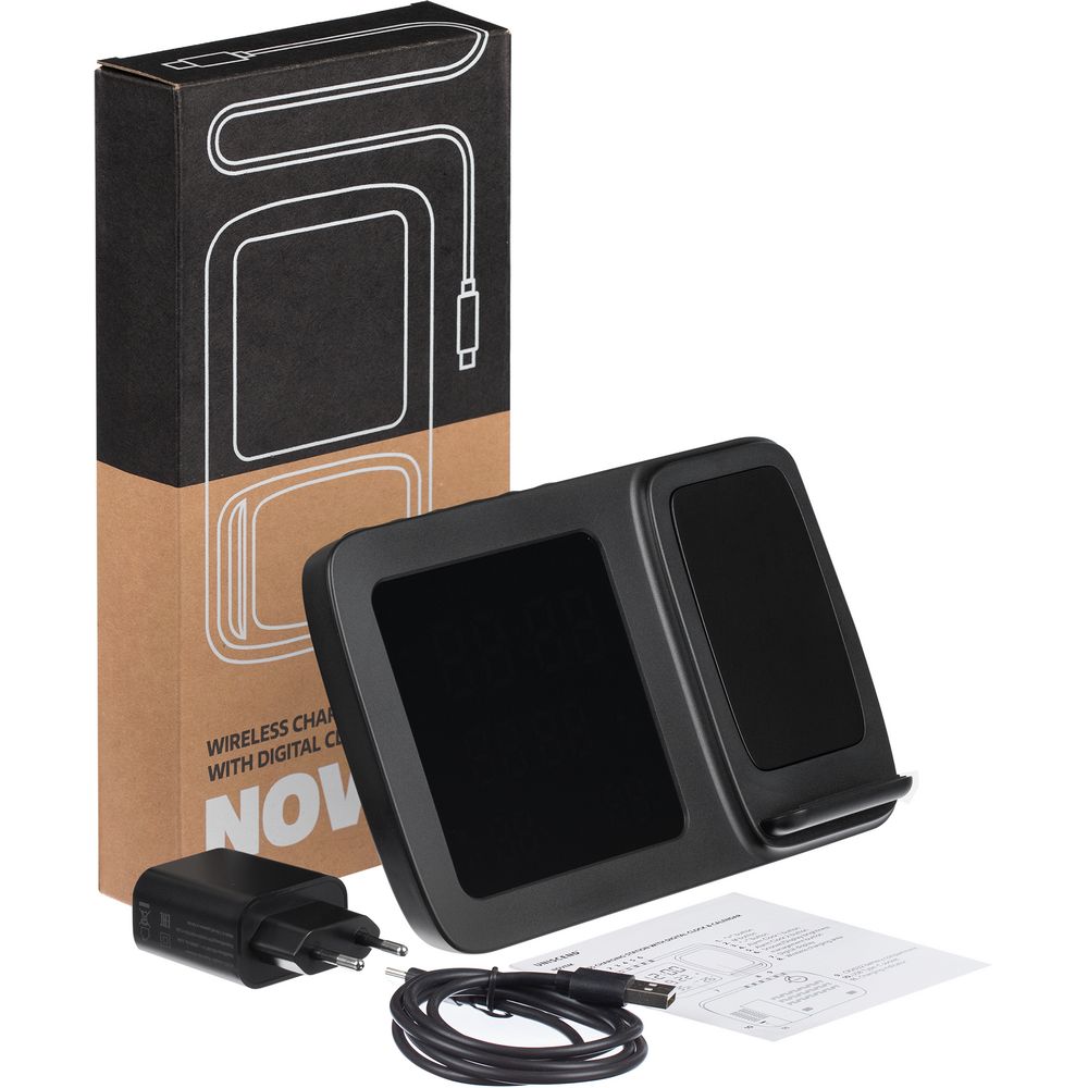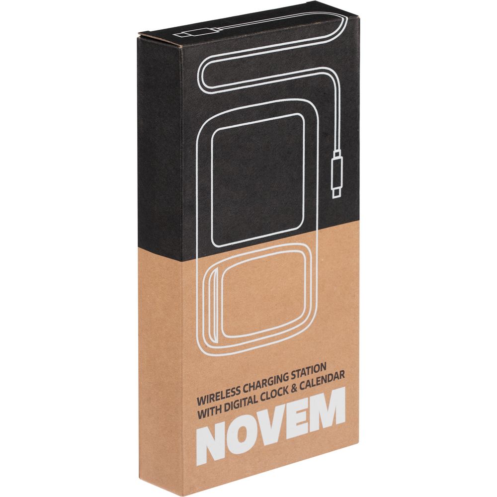 Станция беспроводной зарядки с часами и календарем и подсветкой логотипа Novem, черная