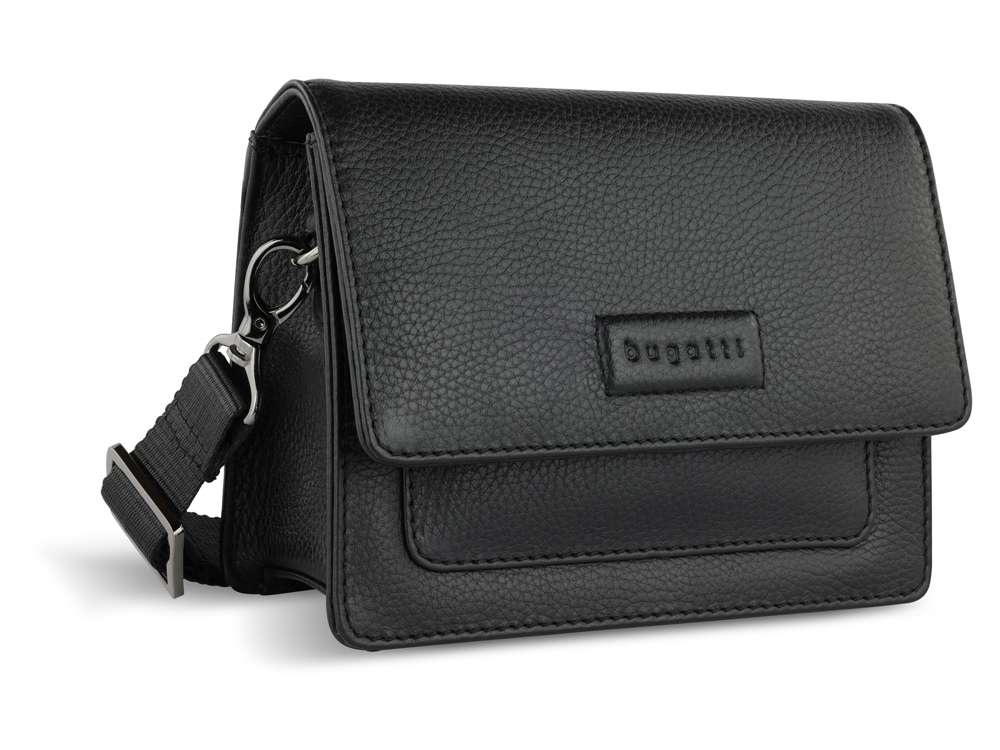 Сумка через плечо женская BUGATTI Elsa, чёрная, воловья кожа/полиэстер, 18,5х8,5х14,5 см