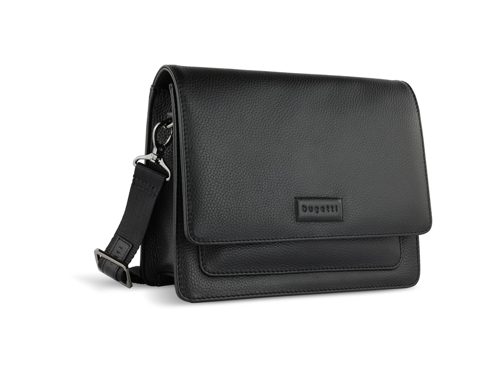 Сумка через плечо женская BUGATTI Elsa, чёрная, воловья кожа/полиэстер, 25х8,5х20 см