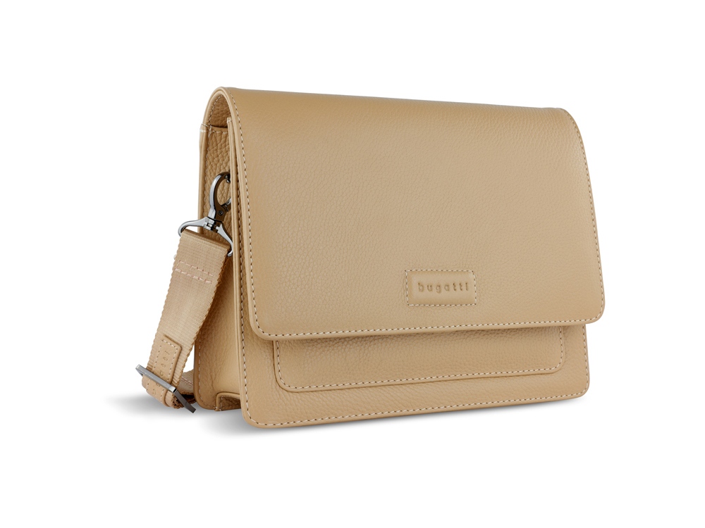 Сумка через плечо женская BUGATTI Elsa, песочного цвета, воловья кожа/полиэстер, 25х8,5х20 см