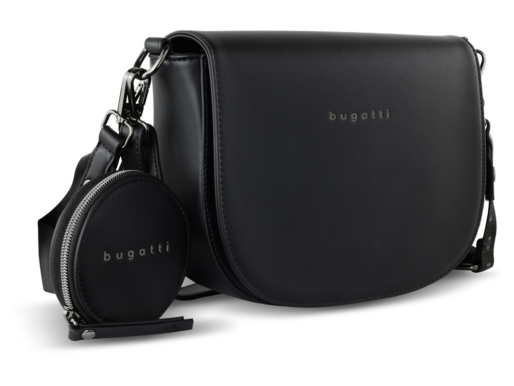 Сумка наплечная женская BUGATTI Almata, с кошельком, чёрная, полиуретан, 27х6х18,5 см