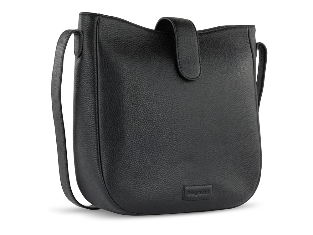 Сумка женская BUGATTI Elsa, чёрная, воловья кожа/полиэстер, 29х8х27 см