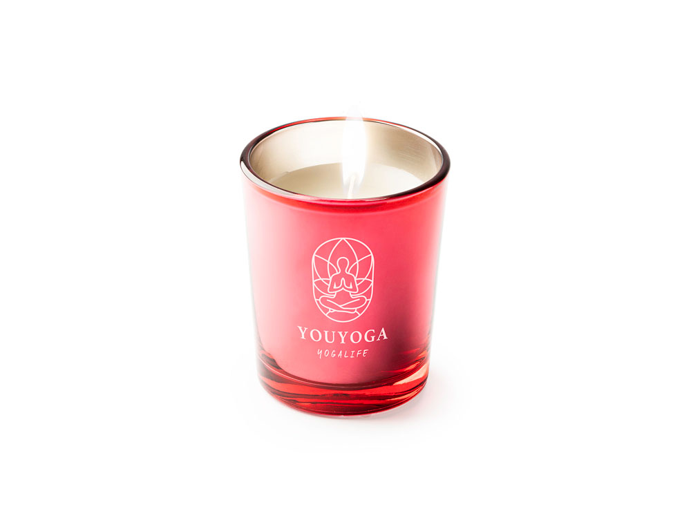 Ароматическая свеча в стеклянном подсвечнике с разнообразными ароматами (кофе, хвоя, лаванда, ваниль и клубника).