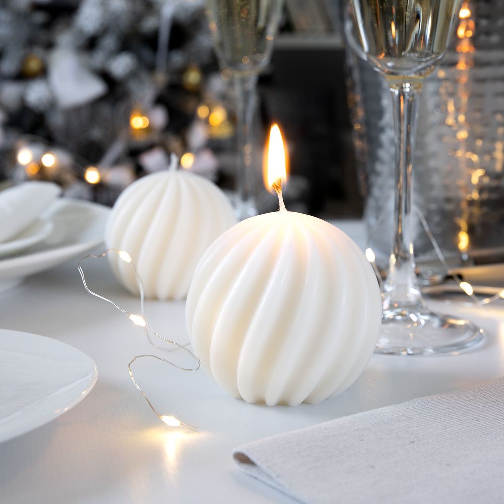 Словно елочная игрушка, изящная фигурная свеча Glowberry — само воплощение зимнего уюта. Спиральные грани добавляют ей объема, а лаконичное исполнение делает универсальным элементом новогоднего декора.