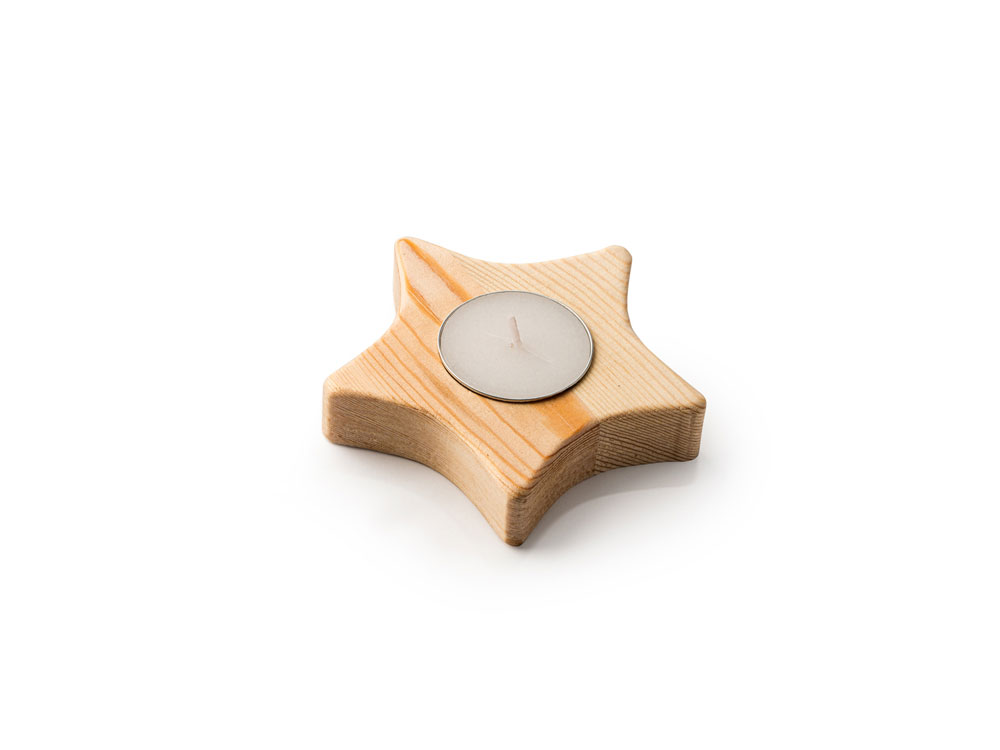 Свеча на деревянной подставке в форме звезды.