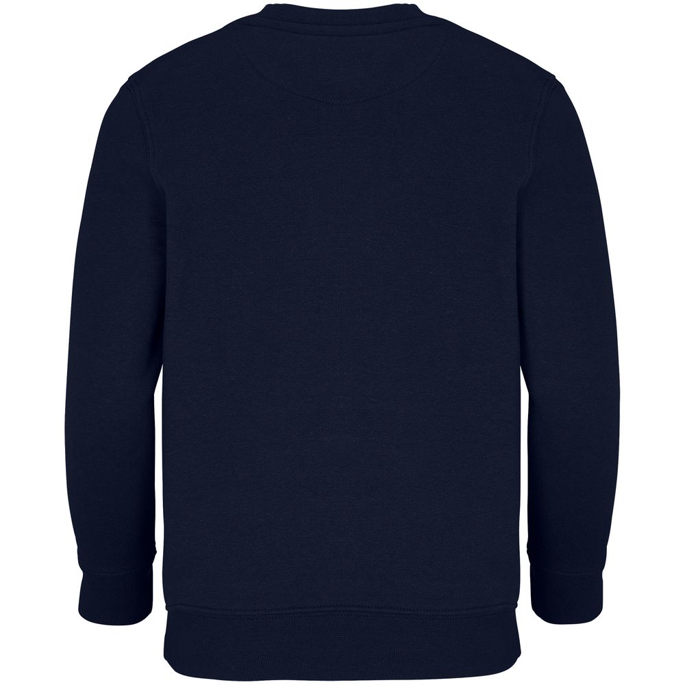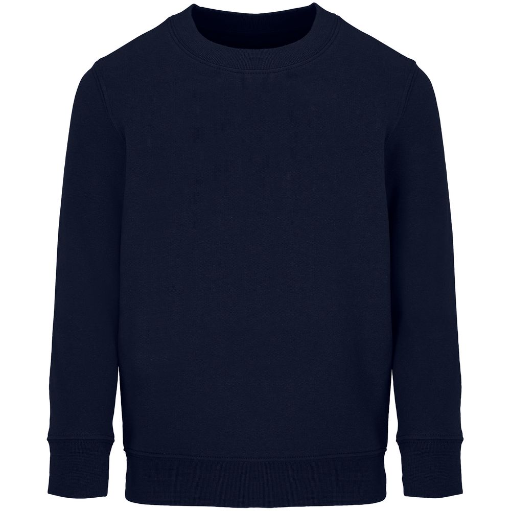 Детский свитшот из хлопка и переработанного полиэстера с круглым вырезом и втачным рукавом.