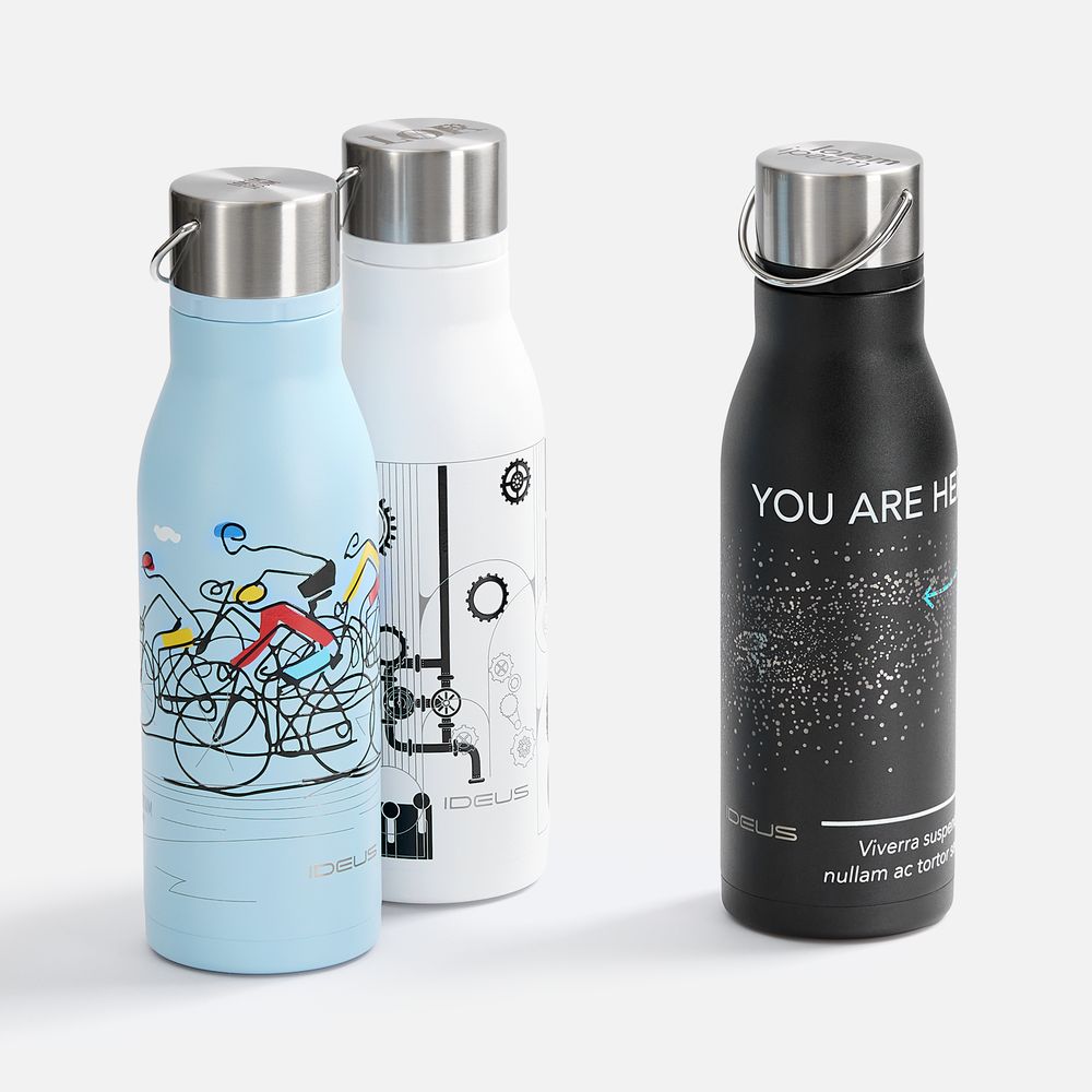 Вместительная бутылка для воды классической формы.