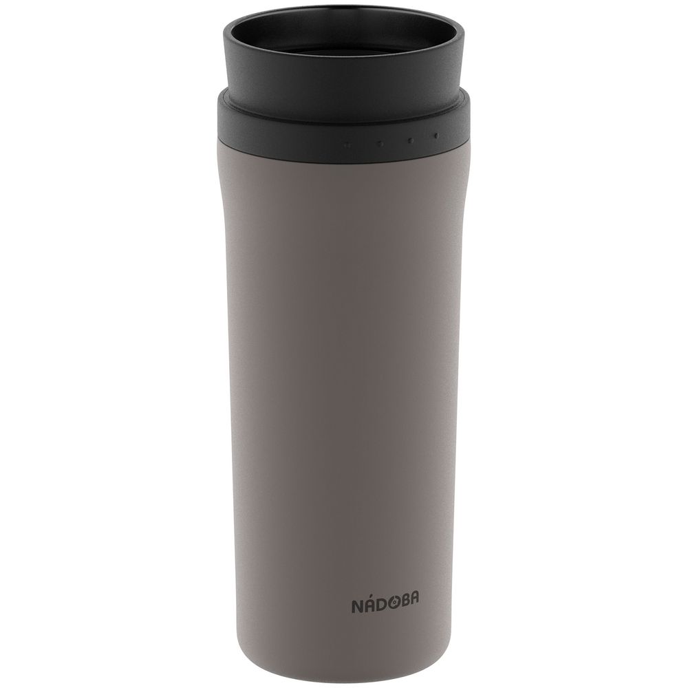Стильная термокружка с металлическим корпусом и удобным клапаном для питья.