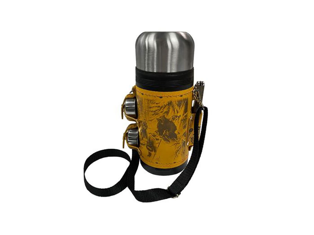 — Термос 1,2л (нерж.сталь) с металлической колбой в чехле из натуральной кожи с художественным выжиганием — 1 шт.