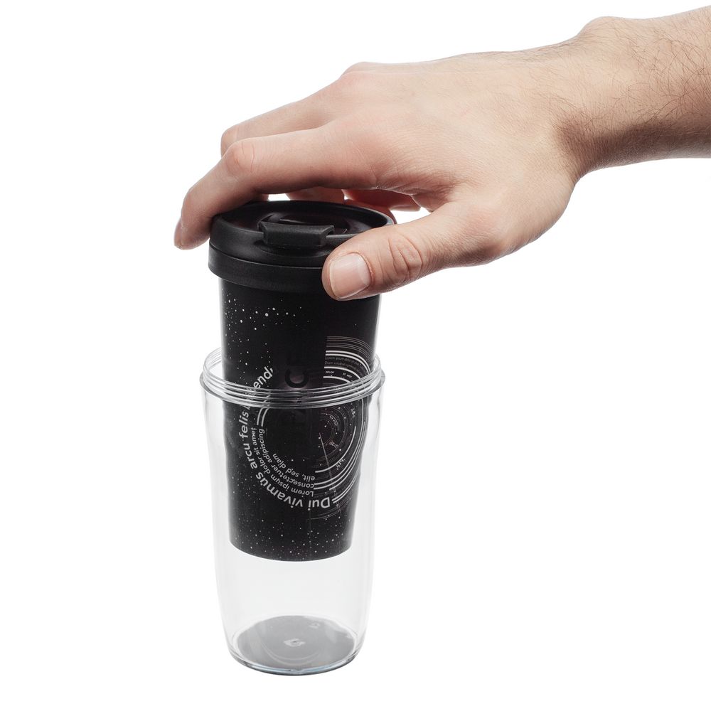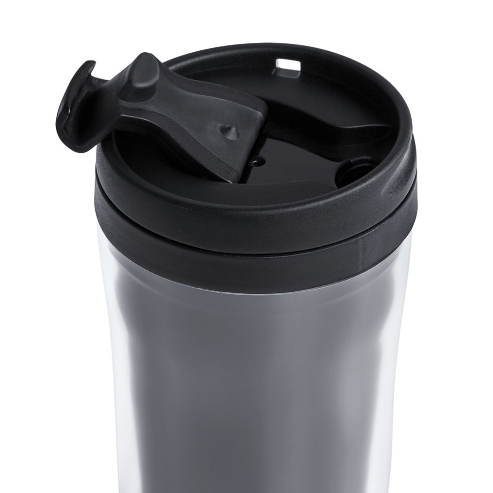 Двухслойная конструкция из пластика внутри и снаружи. Герметичная завинчивающаяся крышка с откидным клапаном для питья.