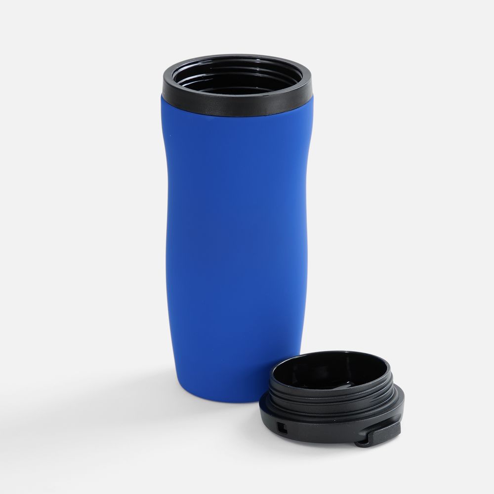 Двухслойная конструкция из нержавеющей стали снаружи и пищевого пластика внутри. Герметичная завинчивающаяся крышка с откидным клапаном для питья. Покрытие софт-тач. В отверстие в крышке можно вставить шнурок для удобного ношения стакана на руке. Шнурок в комплект не входит.