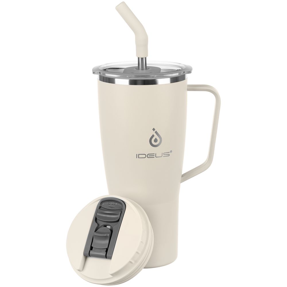 - 2 крышки в комплекте: одна на 100% герметичная с механизмом блокировки отверстия для питья, вторая — с отверстием для трубочки