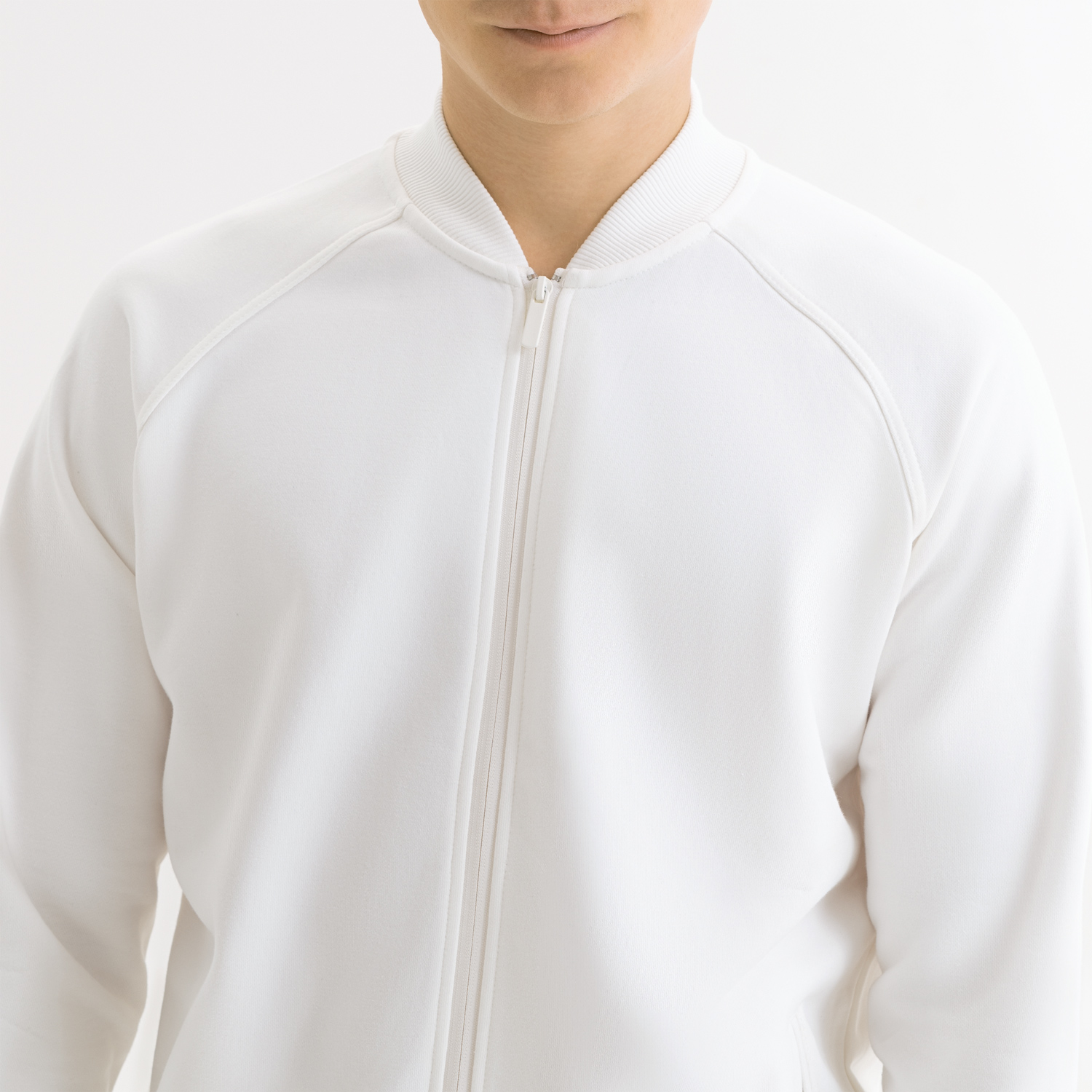 Стильная толстовка бомбер унисекс на реверсной молнии свободного силуэта с прорезными карманами в рамку.