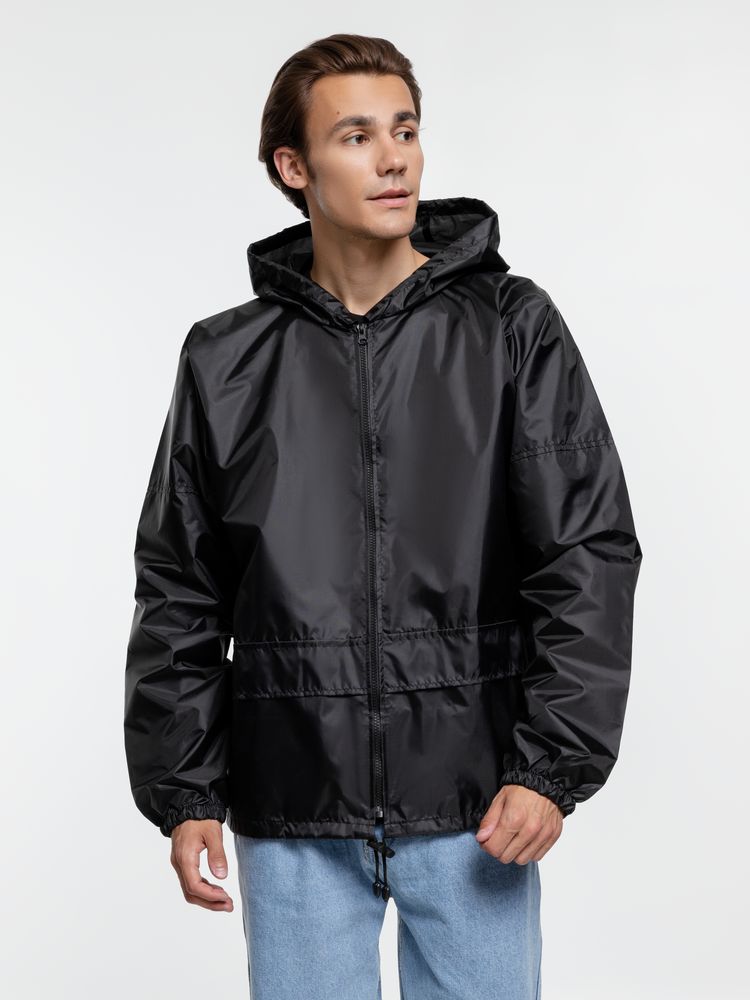 Укороченный дождевик свободного кроя из ткани таффета с влагозащитным покрытием. Складывается в мешочек — удобно брать с собой.