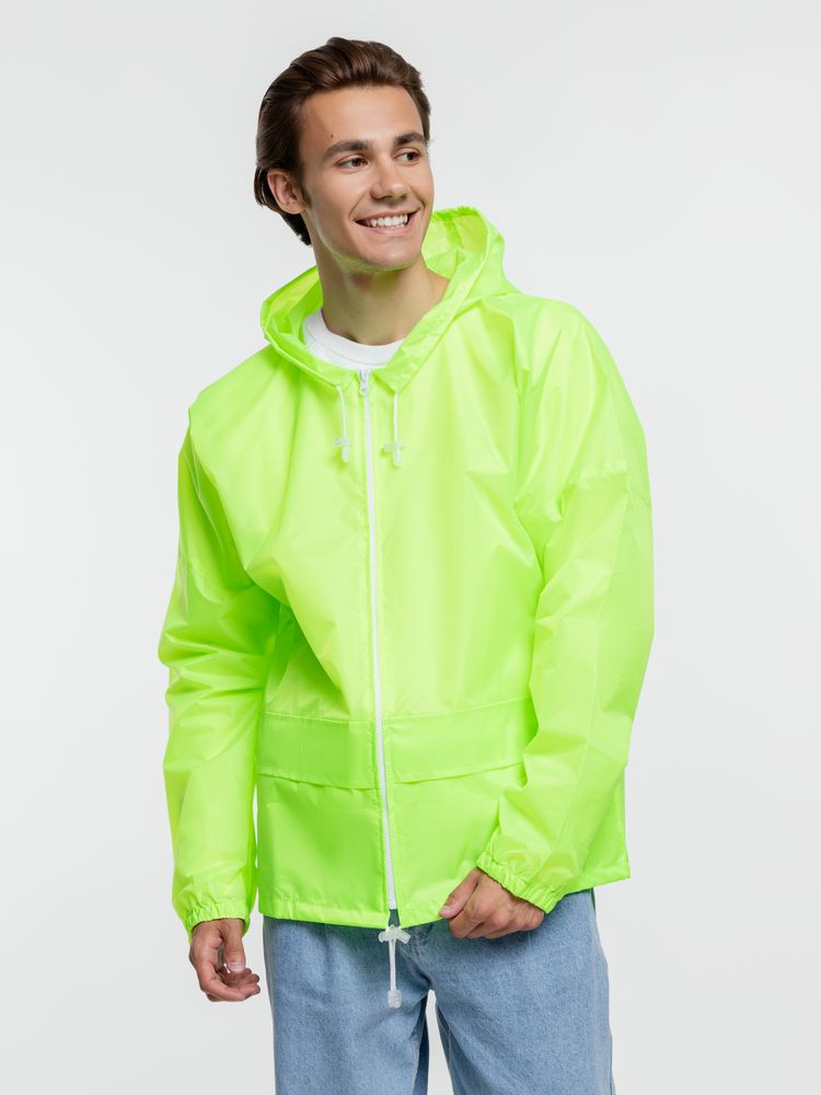 Укороченный дождевик свободного кроя из ткани таффета с влагозащитным покрытием. Складывается в мешочек — удобно брать с собой.