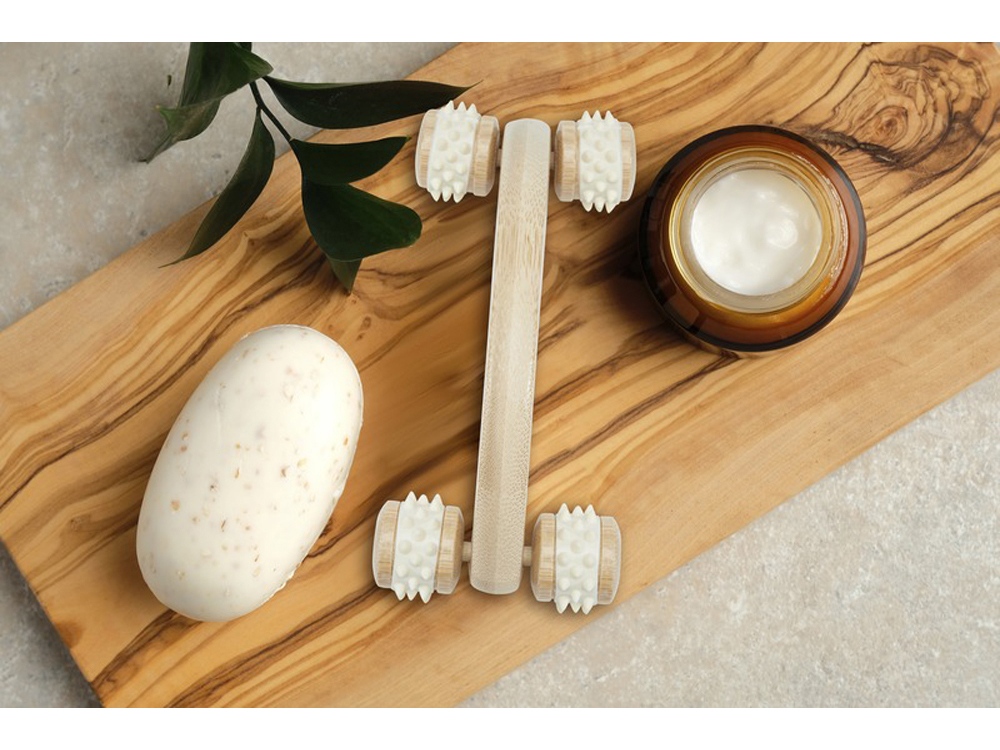Volu Бамбуковый массажер разработан специально для массажа рук, ног, ягодиц, бедер, талии и живота. Он снимает мышечное напряжение, улучшает кровообращение, уменьшает невралгию, устраняет усталость и помогает подержать здоровье мышц. Используемый бамбук поставляется и производится в соответствии со стандартами устойчивого развития.