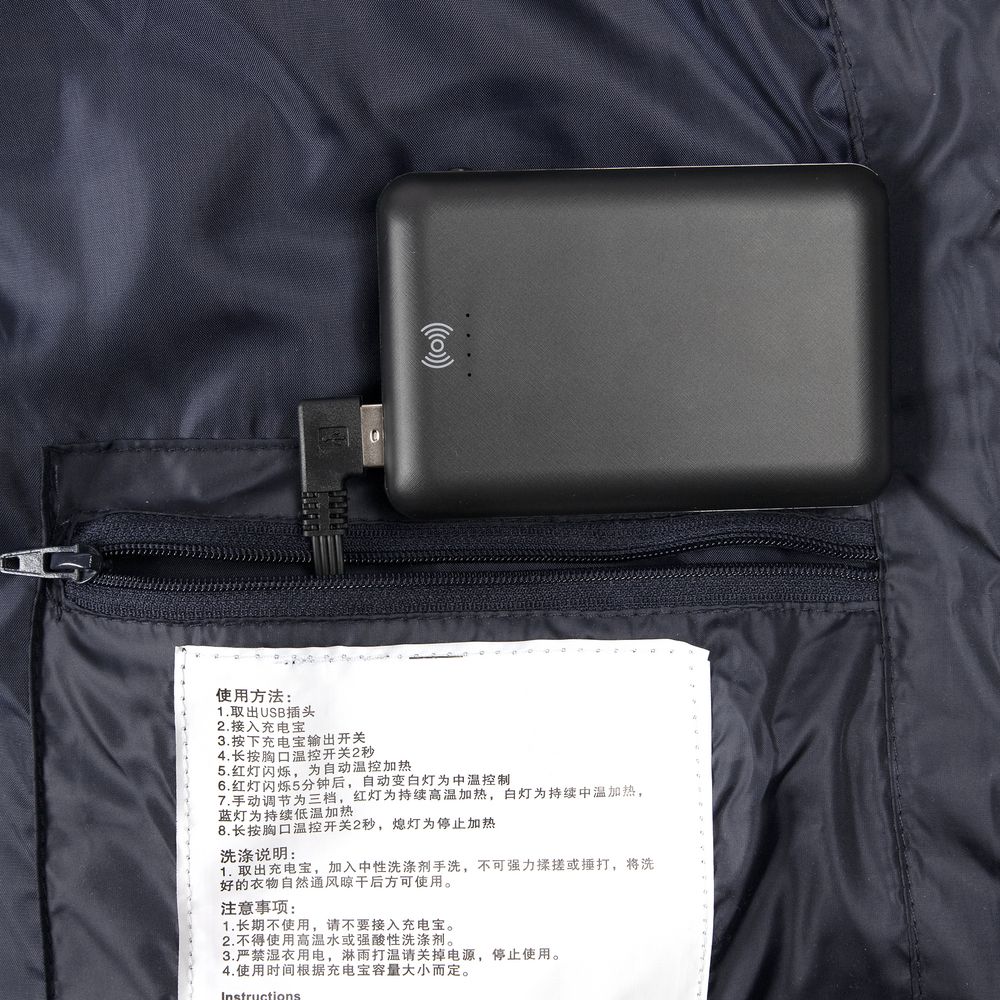 Жилет со встроенным нагревательным элементом из углеродного волокна с девятью зонами нагрева в области спины, шеи и живота. Работает от внешнего аккумулятора (в комплект не входит), подарит ощущение тепла и комфорта в любую погоду.