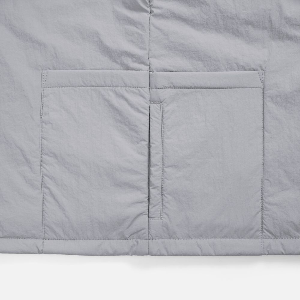 Коллекция верхней одежды, что легко согревает и обволакивает, как теплый и ласковый ветер, и в то же время ветра совсем не боится. Жилет из нейлона с текстурой мятого шелка создает приятный микроклимат, в котором воздушность сочетается с комфортной терморегуляцией.