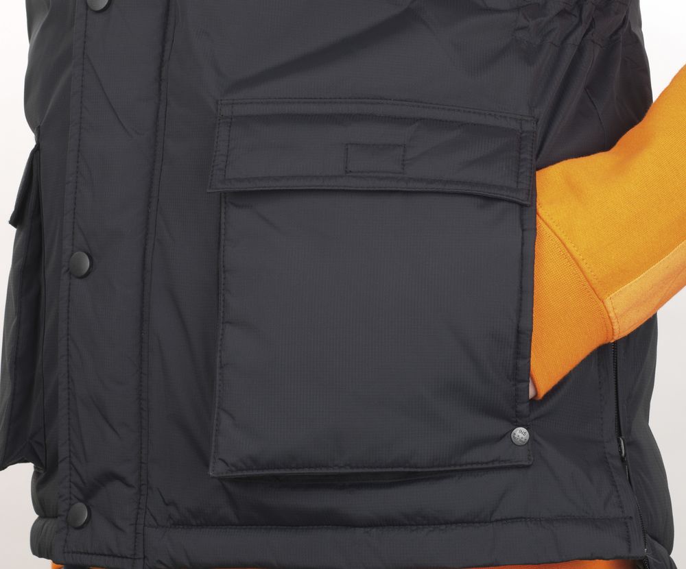 - Две молнии по бокам внизу для большей легкости движения, одна внутренняя молния на груди и одна — внизу жилета