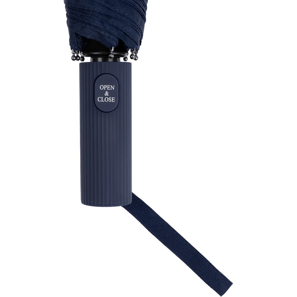 • Прямая ребристая ручка из пластика с петлей и кнопкой открытия и закрытия зонта