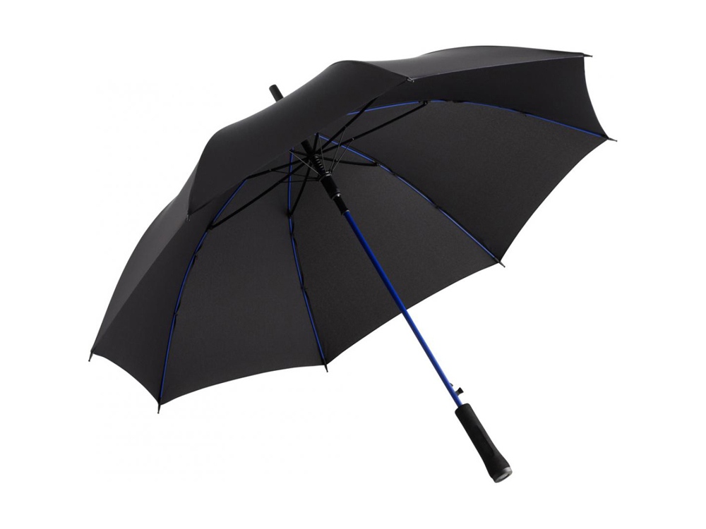 Зонт-трость 1084 Colorline с цветными спицами и куполом из переработанного пластика, черный/синий